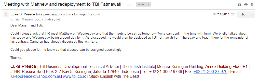 Luke Preece Recommended Kicking Matthew France Out of Kuningan (Screen Dump #5) tbilanguageschool / January 9, 2013 Share this: Click to share on X (Opens in new window) X Click to share on Facebook (Opens in new window) Facebook Like Loading...
