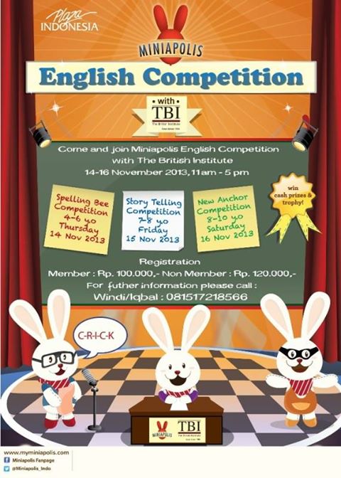 We have been alerted to a disgracefully cheap new promotion from TBI being run in November 2013. Even for these jaded TBI observers who have long doubted they could sink any lower, this one comes as a surprise. It turns out that TBI is now so cheap, nasty and miserly that it is now charging 5 year olds Rp 100.000 to enter a spelling bee! Yes, you heard that correctly. This week TBI are demanding that child entrants into various spelling and story telling competitions at Miniapolis on Level 3 of Plaza Indonesia cough up Rp 100.000 to enter a TBI spelling bee. They then have the nerve to say, “Win cash prizes and a trophy!” Um, would that happen to be the money that the kiddies handed you guys to enter the competition? Basically, this company has now become so Scrooge-like that they now demand that parents cough up the prize money for TBI’s own competitions. Unbelievable.