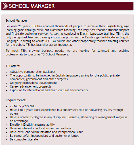 What? You heard this information from a previous School manger of TBI Kuningan, the so-called flagship school of the whole chain? Well, don’t listen to him…he’s crazy. Crazy as a loon.